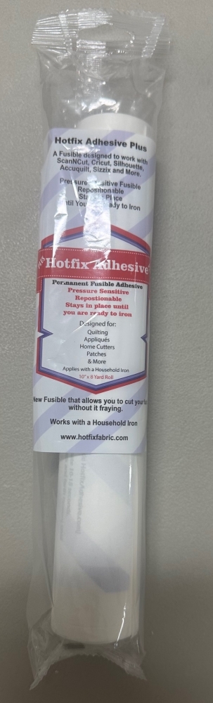 Hotfix Adhesive PLUS works with home cutters by bonding the adhesive with whatever material you want to cut. Perfect for Applique and no sew. Just Iron on - permanent adhesive! Allows you to sew with no gumming up of the needle. Bonds to Fabric, Lace, Leather, paper, Photos and more. Fuse the adhesive to your material using a household Iron. Once your design is cut out you can get the perfect placement before you iron it onto your project and it is permanent.
